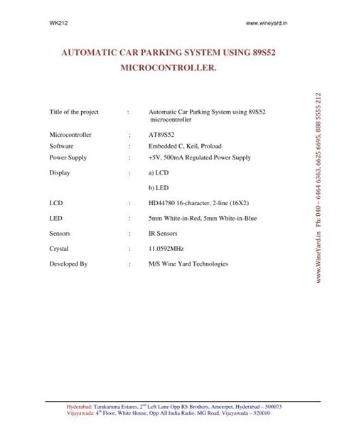 Read Online automatic car parking system using 89s52 microcontroller Doc By Click Button. automatic car parking system using 89s52 microcontroller it’s easy to recommend a new book category such as Novel, journal, comic, magazin, ect. You see it and you just know that the designer is also an author and understands the challenges involved with having a good book. You can easy klick for detailing book and you can read it online, even you can download it